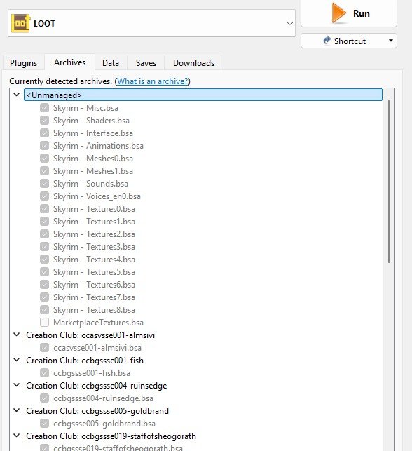 I've recently noticed that MarketplaceTextures.bsa is unchecked and so not being used when Skyrim is loaded. As Automatic Archive Invalidation is marked as not required for this game I haven't been able to find a way to enable it. I tried compressing it to add it to MO2 as it's own mod and while it was recognized it was still left unticked in Archives whether it was active or not in the left pane. How can I get so MO2 will have it active as it should be?