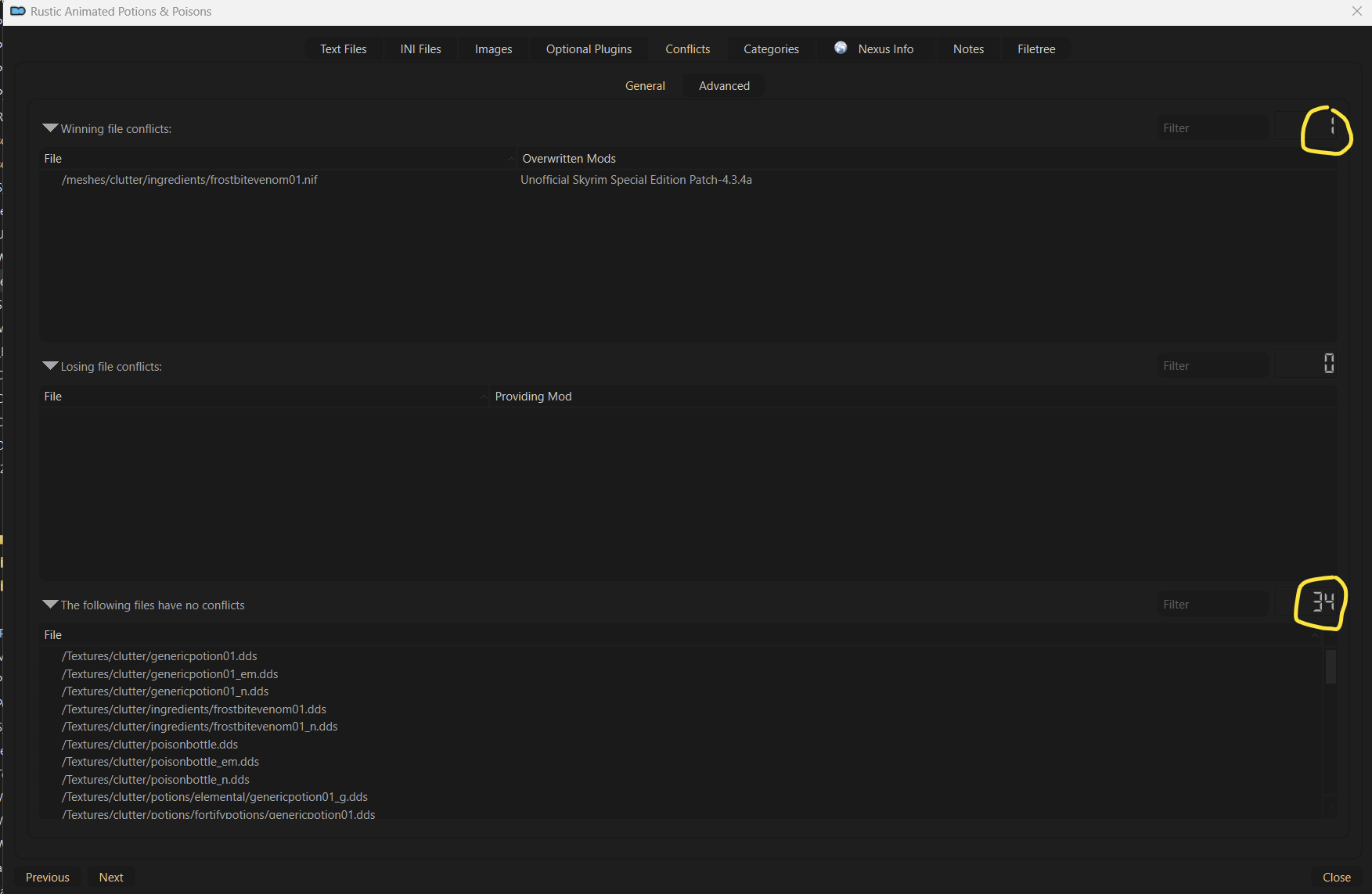 I can't remember having seen any info about that setting. Maybe you should say something in the guide about it. Maybe something like: "You should now see only the frostbitevenom01.nif file in the Winning file conflicts pane. If not then try to activate the setting Enable archives parsing (experimental) under Tools > Settings > Workarounds tab, and reinstall the mod."