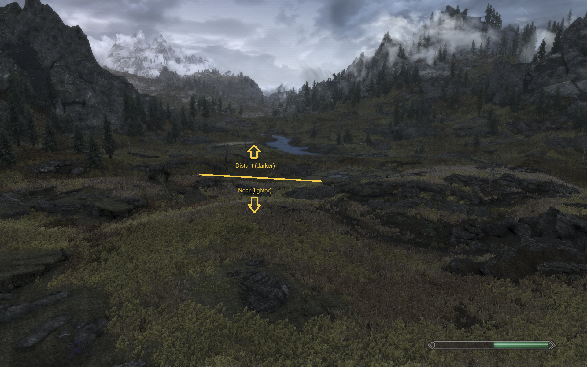 Here is the result with 2.4 TexGen+DynDOLOD generation settings. To be honest I don't see a huge difference - distant grass is still much darker, resulting in a noticeable pop-in effect: