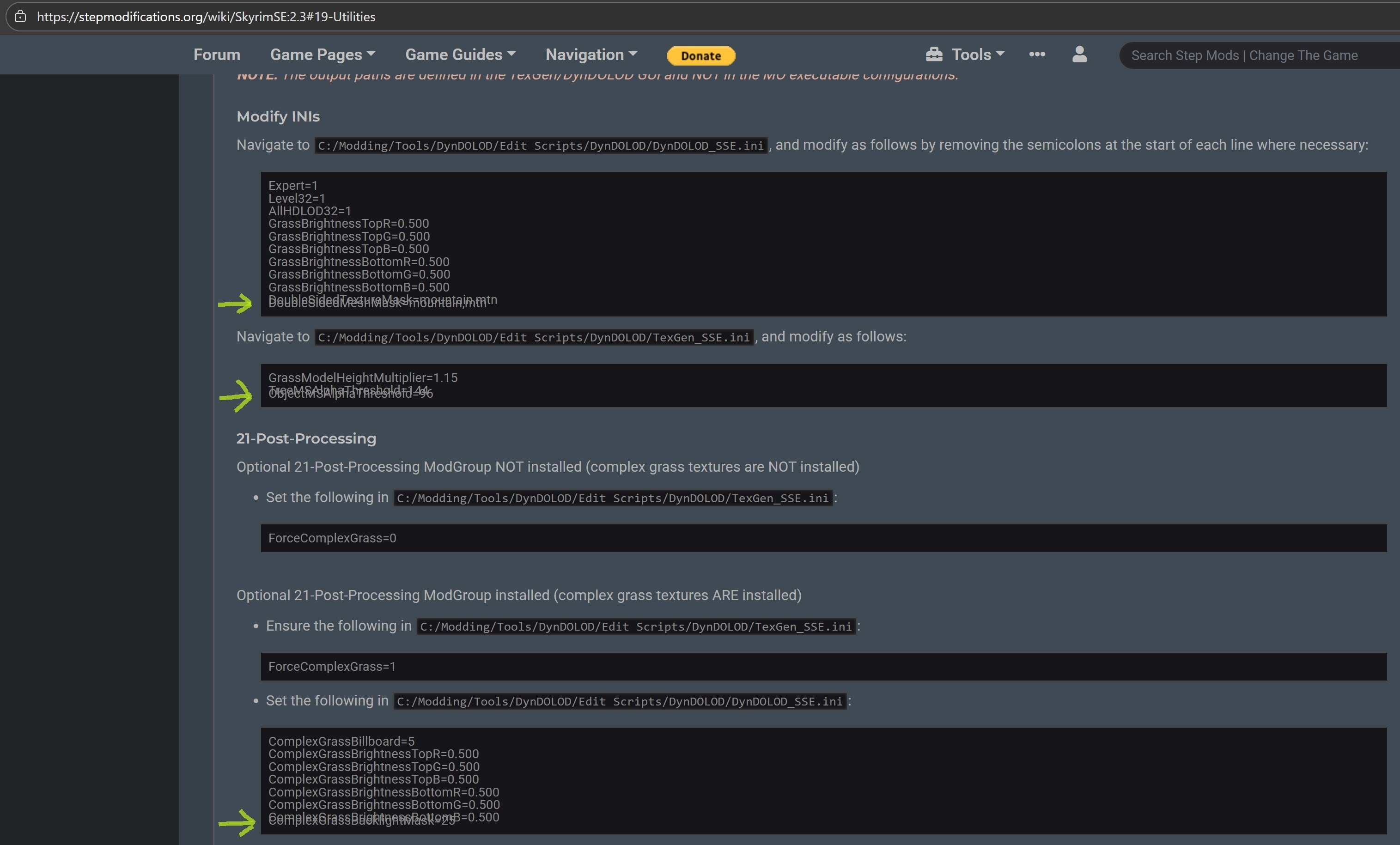 Currently, I'm completing the steps from the section 19 Utilities of the guide. And specifically, configuring the Dyndolod inis is proving difficult because there are three lines we are instructed to edit in the INIs that are illegible, as you can see in the attached screenshot. (I've tried disabling my web browser's extensions, but the issue persists). Could you ckeck that part of the guide and see if you also find those parts illegible, please?