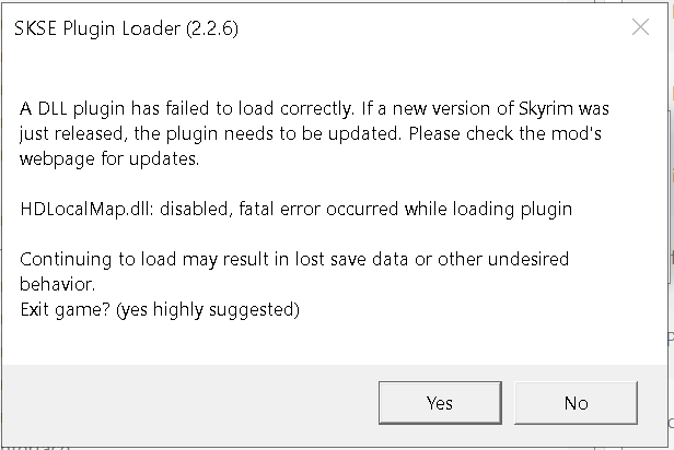 Installed everything according to the guide, triple checked too, but I get the SKSE plugin failed to load for HD Local Maps. I went to try an older version, specifically 1.0.2 to see if it would work, but I am unable to get a download link from Nexus. Any suggestions? Can I just disable the mod? It seems like its just a QoL mod.