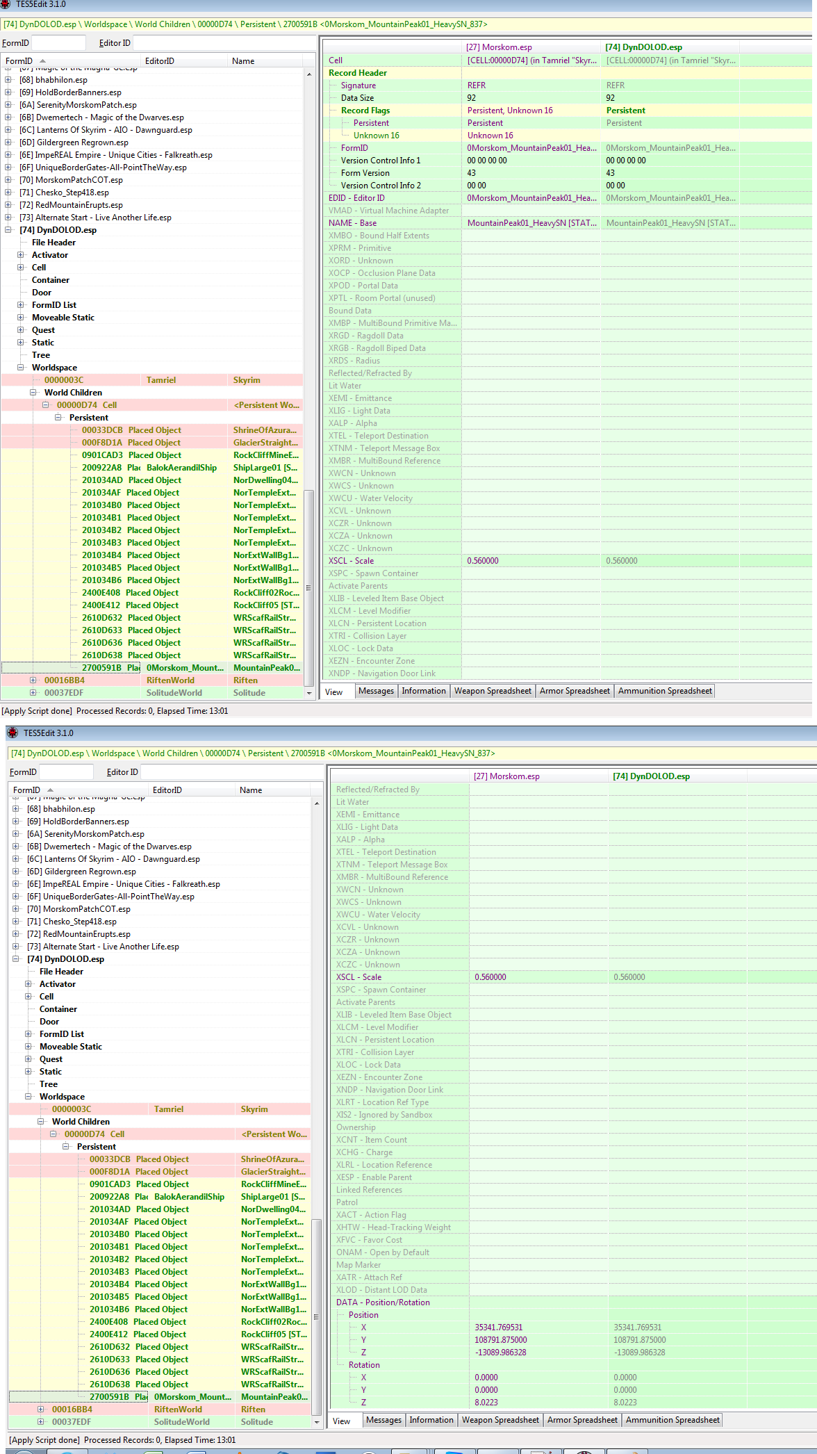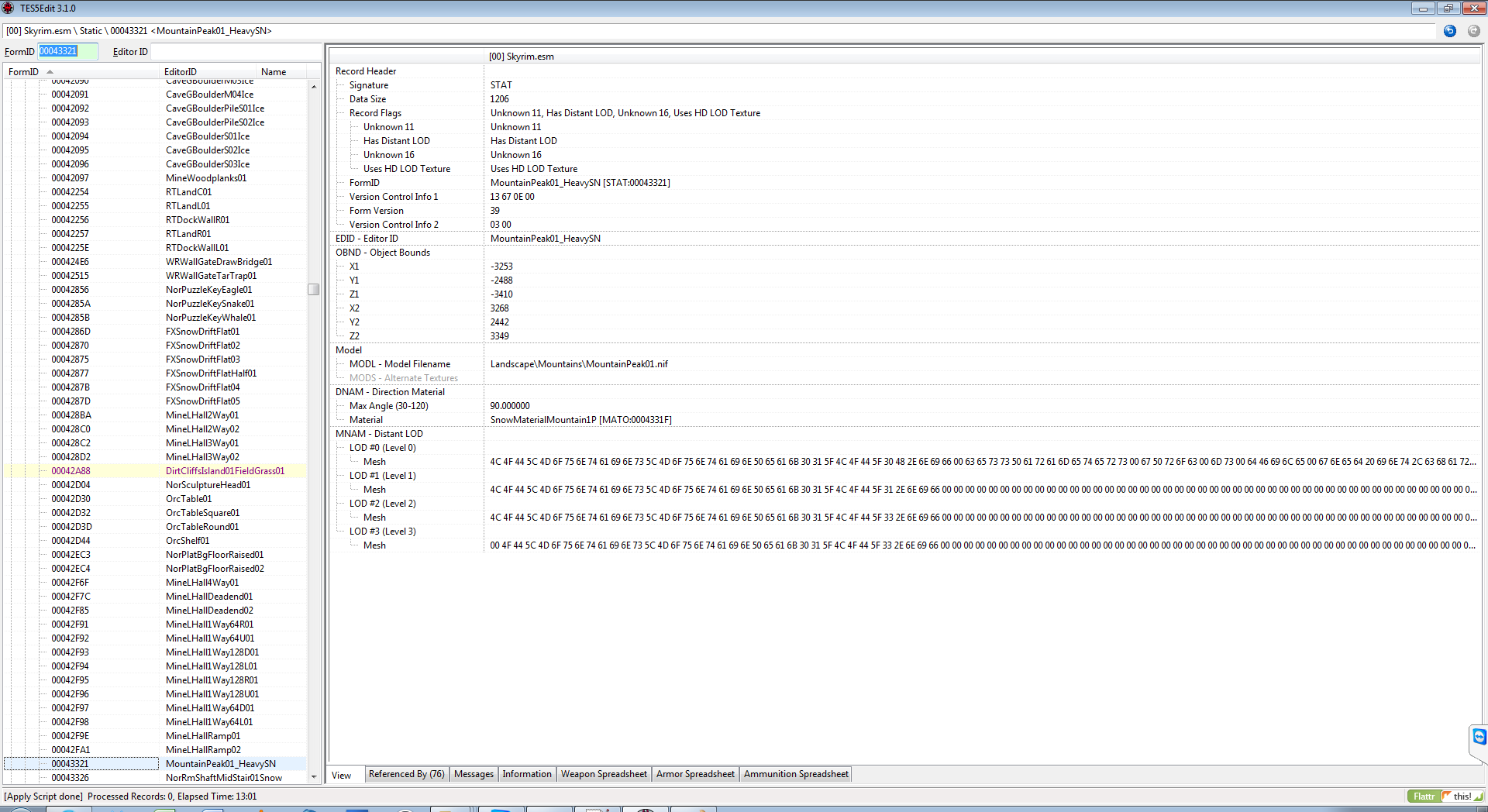 [00:12:29.438] disabled NeverFade, replaced by static LOD for 0Morskom_MountainPeak01_HeavySN_837 [REFR:5B00591B] (places MountainPeak01_HeavySN [sTAT:00043321] in GRUP Cell Persistent Children of [CELL:00000D74] (in Tamriel "Skyrim" [WRLD:0000003C]) at 8,26)